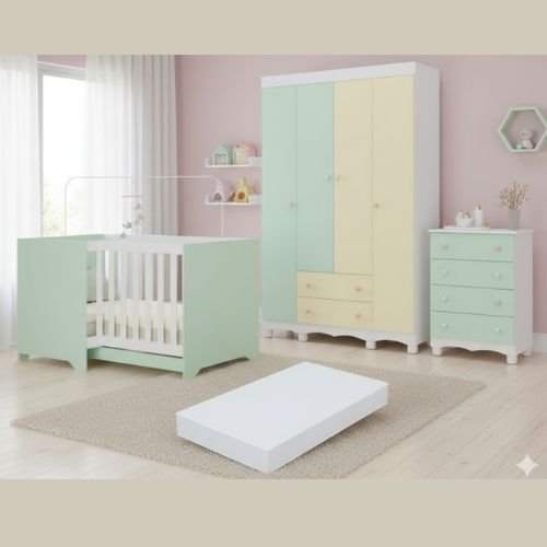 Essencial para organizar roupas, fraldas e acessórios do dia a dia, a cômoda facilita a rotina e mantém tudo sempre à mão. Funcional e segura, ela ajuda a ganhar tempo nos cuidados e mantém o ambiente do bebê mais prático e organizado.